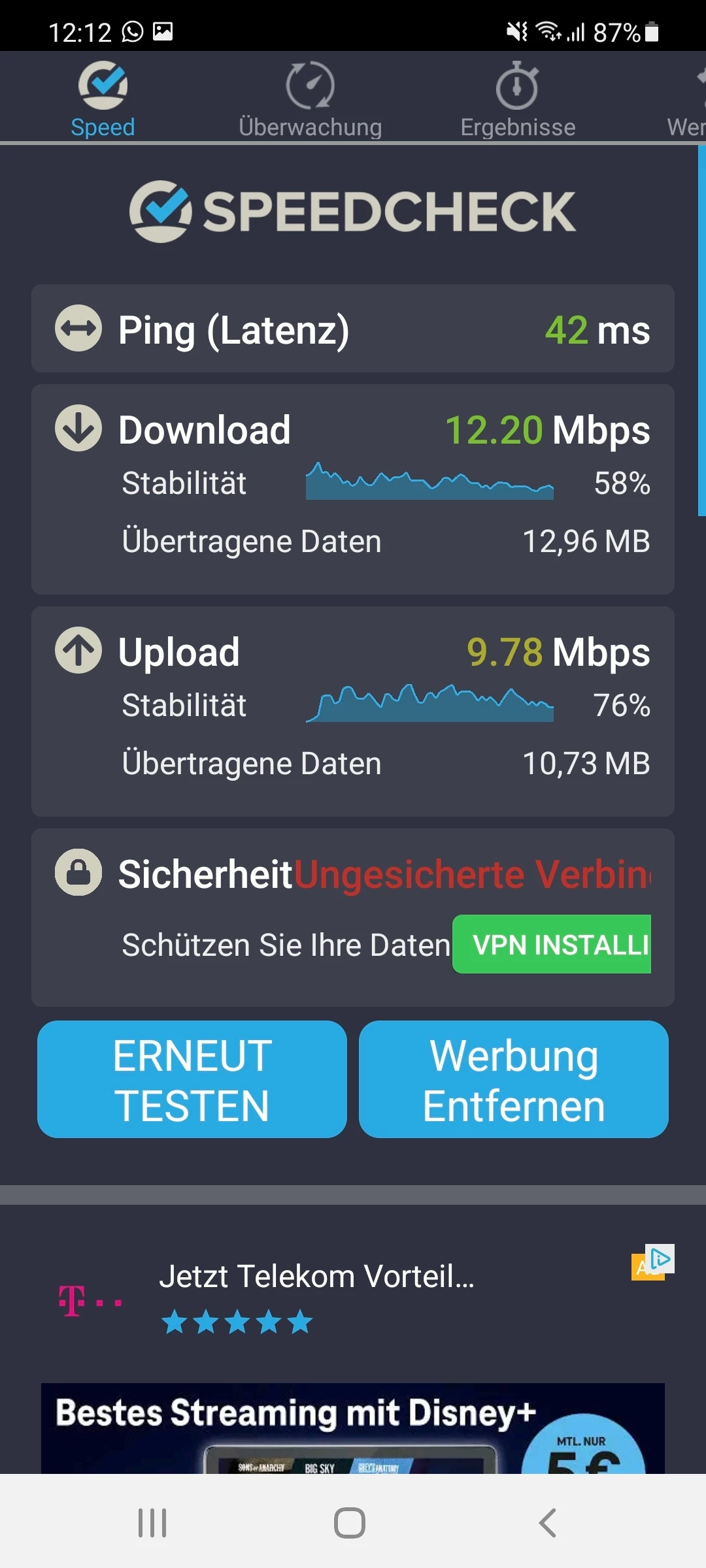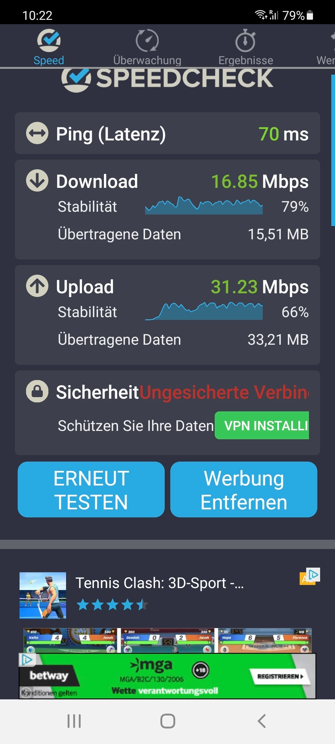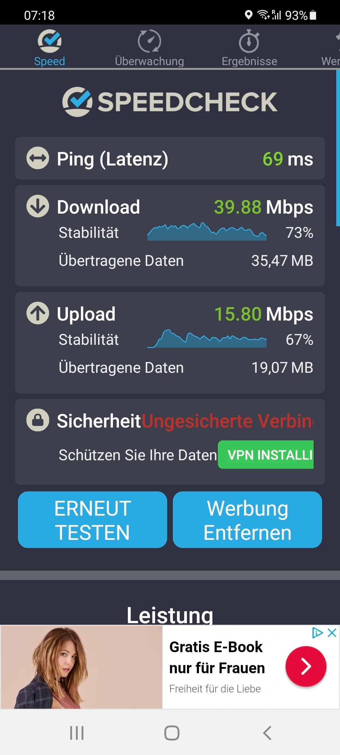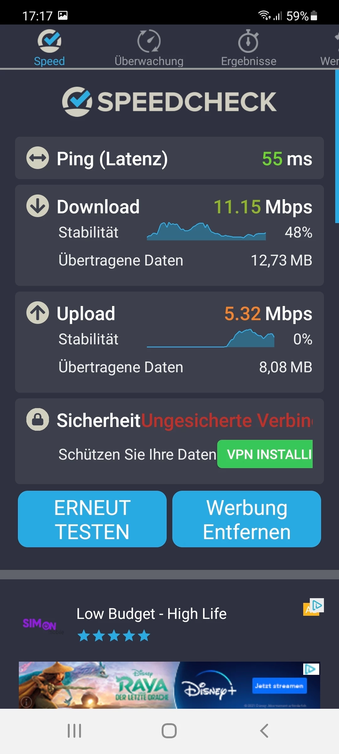 Vorweg kann ich schonmal sagen das es eindeutig nicht am tragbaren Router liegt, er schafft mehr Leistung als mir  bekannt war.