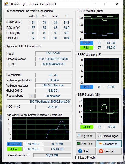 In Rosenheim gibt es einige Stationen, die einen echt fabelhaften LTE Ausbau (+5G) haben. Damit man hier allerdings ordentliche Werte erreicht, ist halt ein besseres Datengerät, als nur ein LTE Cat 4-Router notwendig. Denn für hohe Datenraten ist die Bündelung mehrerer LTE Frequenzträger nötig, und das unterstützt dein Router leider nicht.