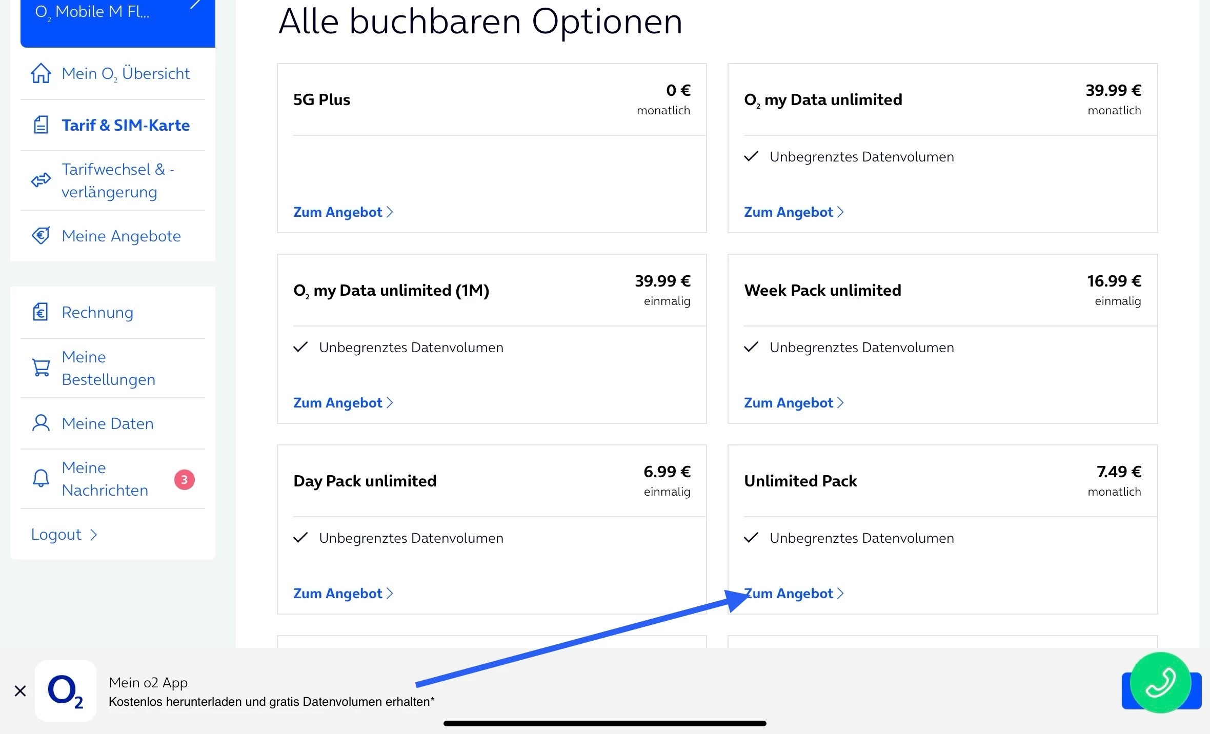 Die Möglichkeit, zu dem Mobile M ein Unlimited Paket zu buchen, finde ich nicht.