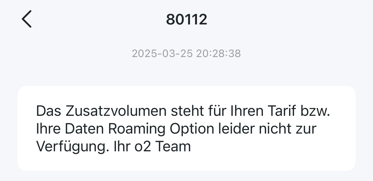 Ich habe die SMS mit Smart Messages anstelle von Google Messages an die 80112 versendet und dies hat erfolgreich funktioniert.