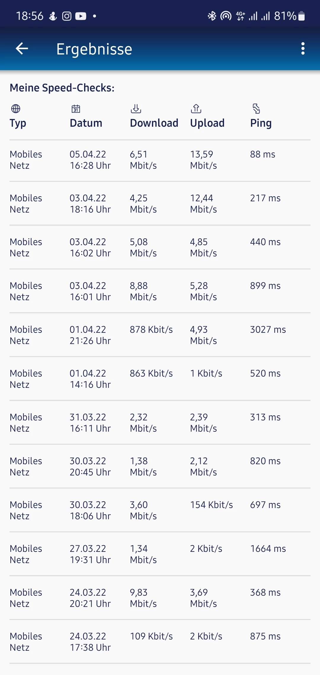 Die Internetverbindung ist mittlerweile schon eine Zumutung. Man kann es auch in der O2 App am Speedcheck sehen wie schlecht die Internetverbindung ist.
