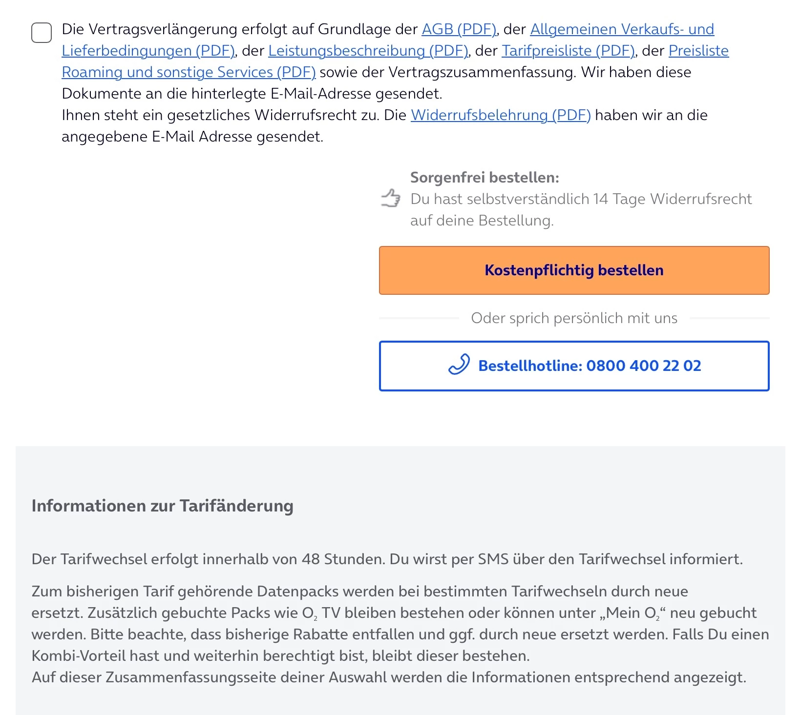 Das mir die Vertragszudammenfassung erst in einer Email angezeigt wird entschließt sich mir auch nicht, da ich ja dann erst den Prozess zur Vertragsverlängerung komplett abschließen müsste, bevor ich die genauen Vertragsdetails erhalte.