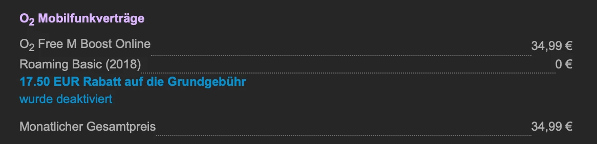 Und ja, wenn ich die Rufnummer mit der 504 am Ende wieder zu den anderen Verträgen hinzufüge, ist dieser Vertrag der “Älteste” und müßte dann der Geber werden und hat dann zwar keinen Kombi-Vorteil, aber den Rabatt.