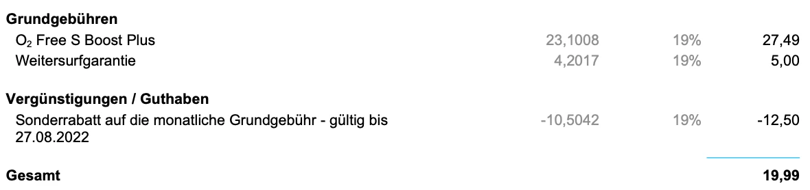 Vielen Dank @o2_Manuela , ich hoffe damit sind nun alle Probleme endgültig gelöst. Ich werde nach den nächsten Rechnungen hier den Stand posten, damit der Thread dann auch als gelöst markiert werden kann.