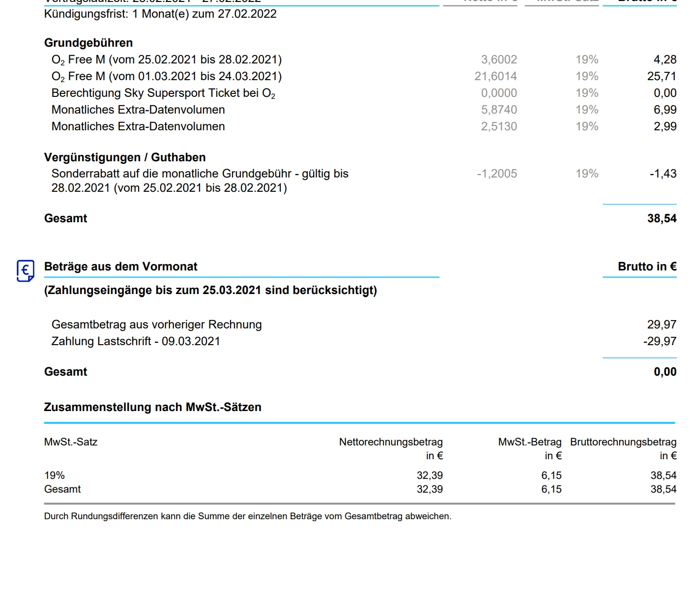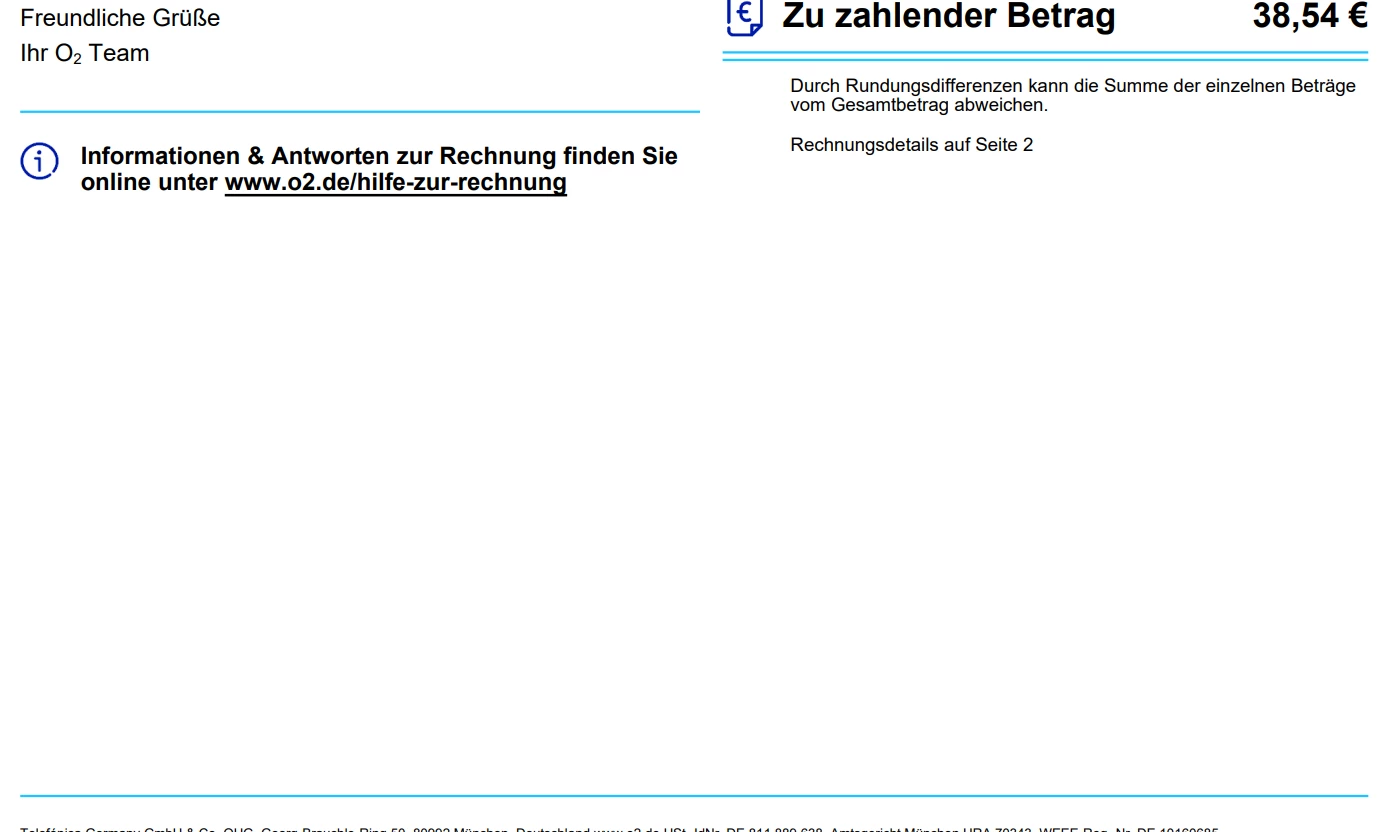 Wir haben die Rechnung über 38,54 EUR nicht von deinem Konto angebucht.