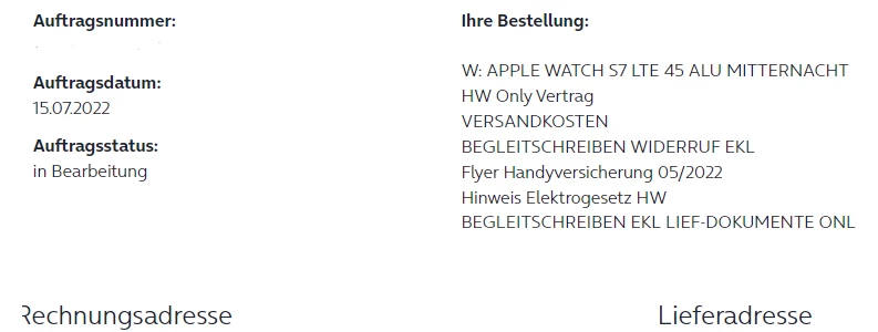 Der Status “„In Bearbeitung“ steht aber bei der Watch, richtig? Dann kommt da auch irgendwann die Versand-E-Mail.