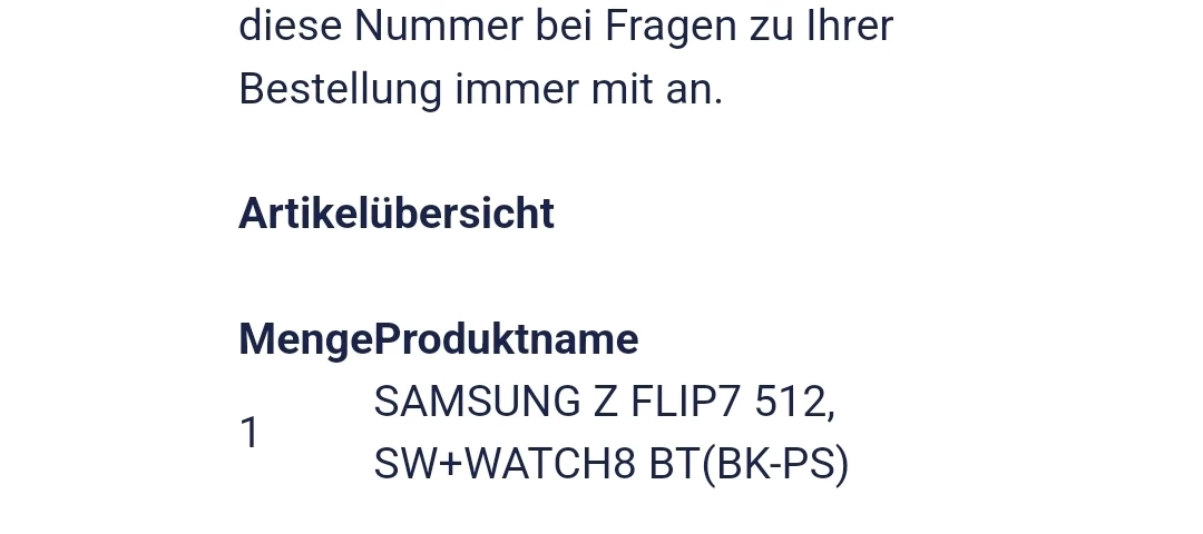 Da lautet die Bezeichnung SAMSUNG Z FLIP7 512, SWZ+WATCH8 BT(PS)