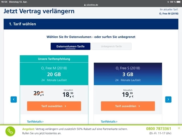 Ich schaue immer von Zeit zu Zeit in den Verlängerungsangeboten in der App. Zum Ende wird es zuweilen günstiger, vor allem, wenn man gekündigt hat.