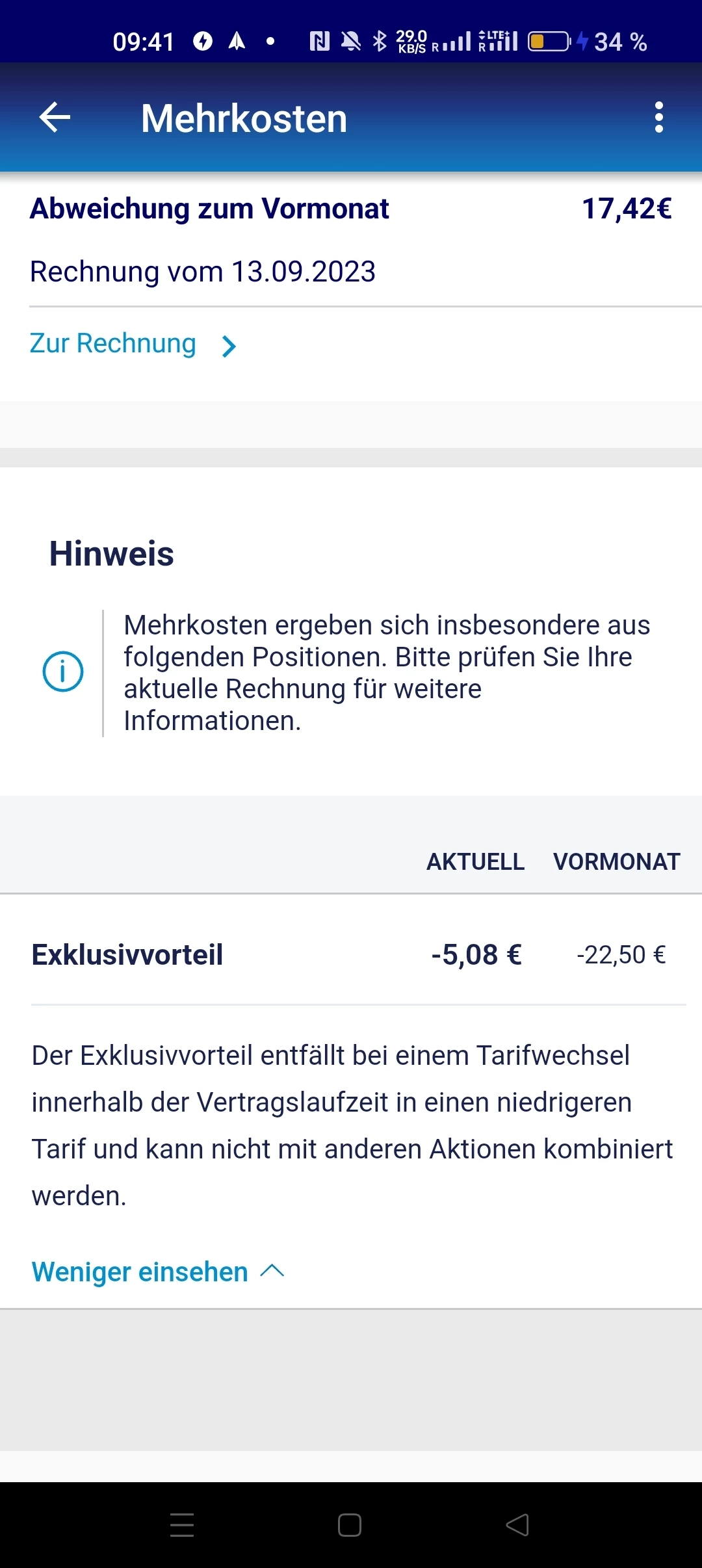 Aus dem Bild kann man ja die Veränderung entnehmen, obwohl ich den Vertrag nicht geändert habe, sondern nur weiterführe und auch nicht in einen kleineren Tarif gewechselt bin.
