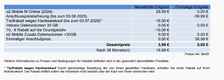 Was heißt die vollen 19,99 EUR? Der o2 Mobile M (2024) kostet 29,99 EUR Grundgebühr. Also wurde ein Hardwarerabatt gestrichen, der für 10 EUR ist noch da?