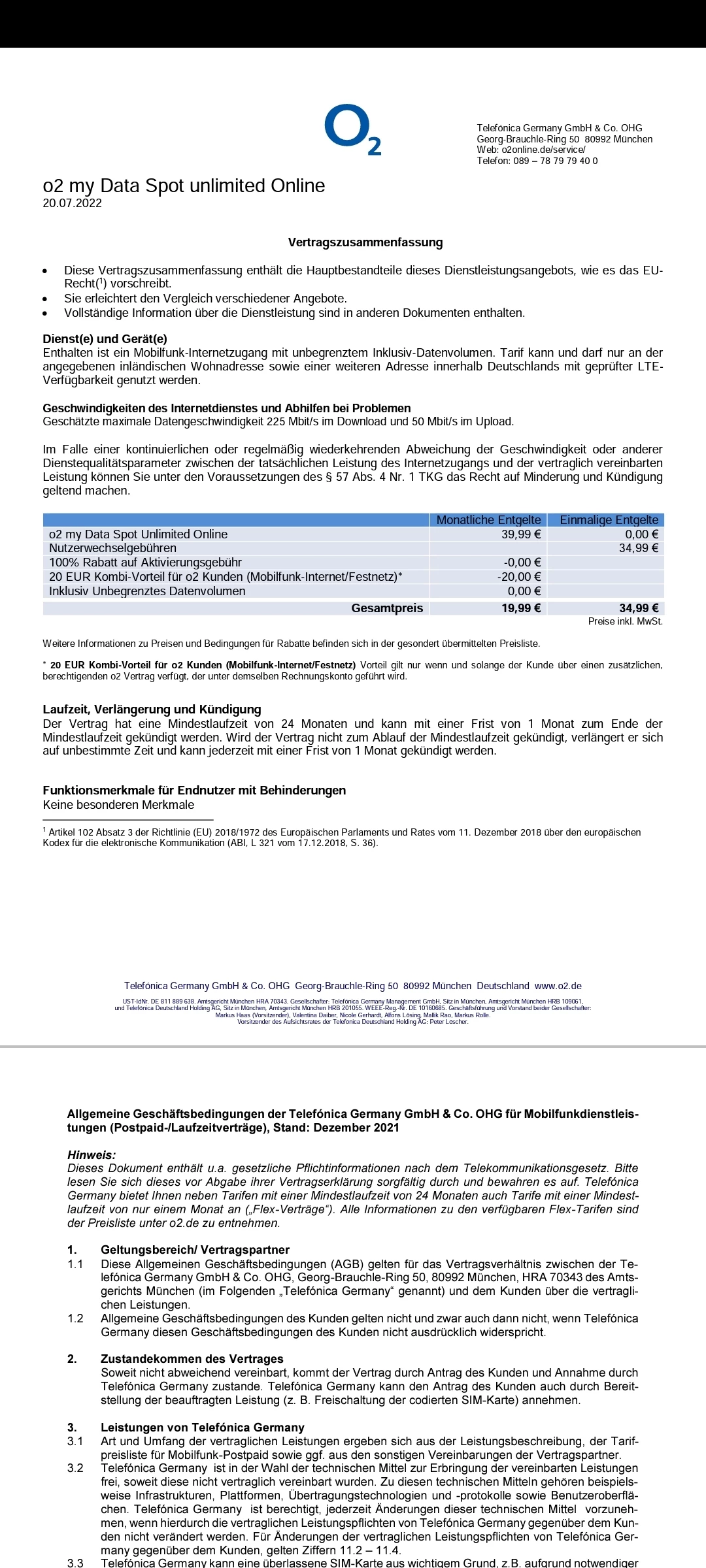 Habe auch eine Kundennummer erhalten wo die 2 Verträge also einmal Mobilfunk und einmal o2 My Data Spot Unlimited Online zusammengefügt wurden.