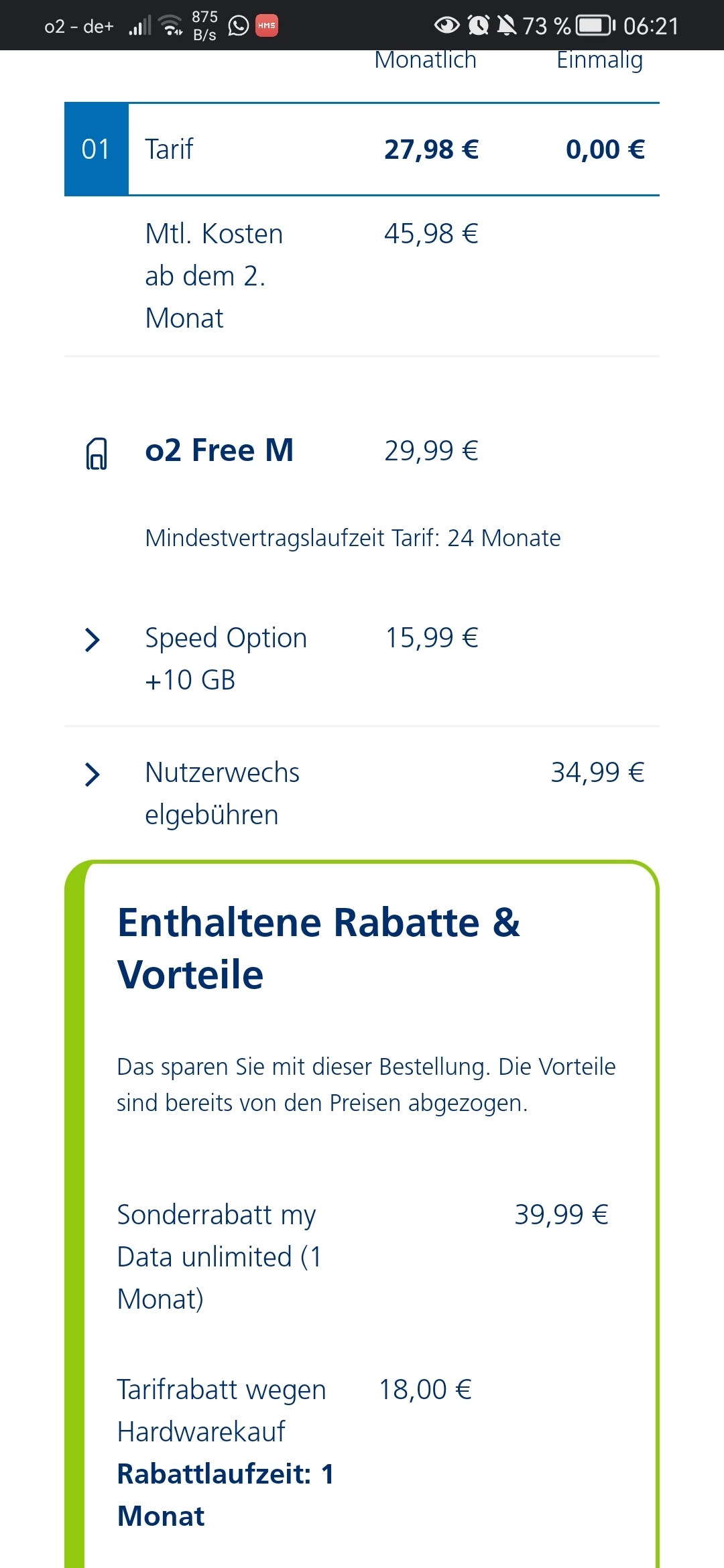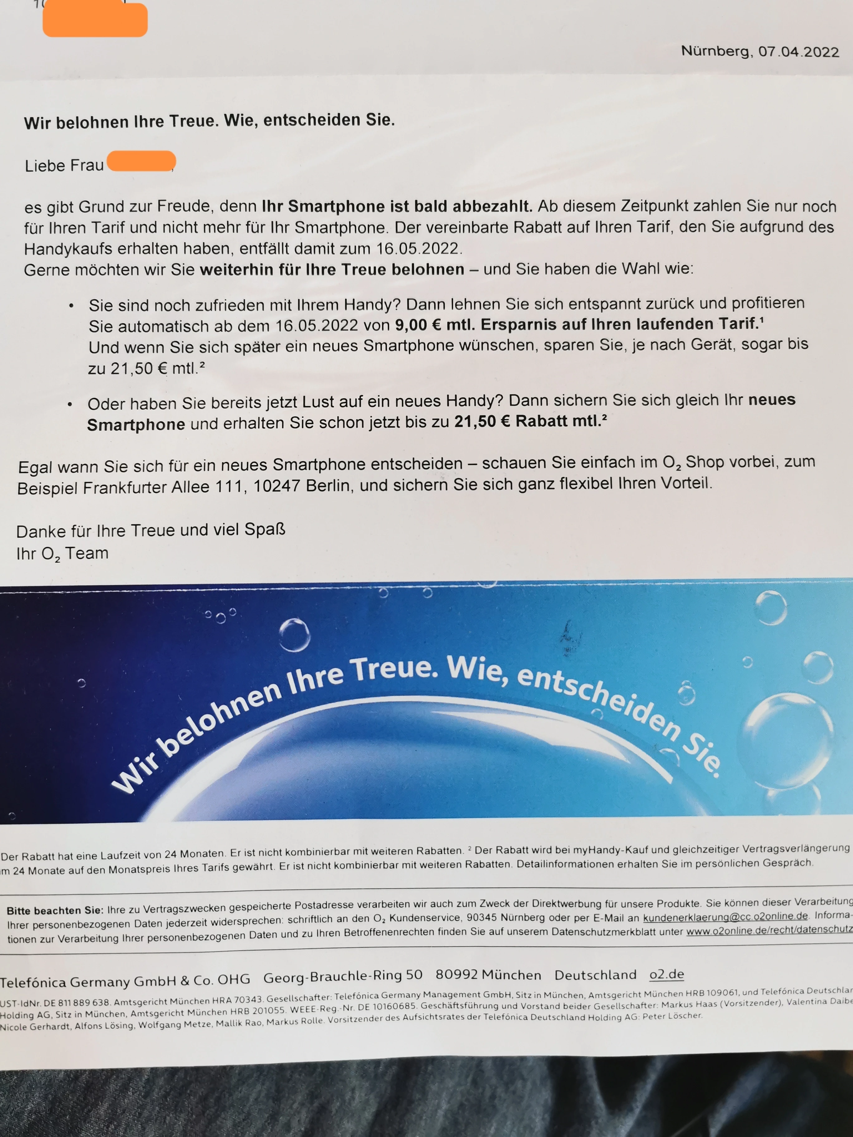 ich benötige Hilfe beim Vertragsinhaberwechsel. Ich habe soweit alles angestoßen und ich erhielt eine Mail mit einem Angebot. Darin ist eine Mindestvertragslaufzeit für den zu übernehmenden Vertrag aufgeführt. Würde ich so hinnehmen, aber empfinde ich mich doch mehr "überrumpelt" mit der Tatsache nur um Inhaberdaten zu wechseln auch 24monate vertragslaufzeit zuzustimmen. Wenn das so ist, kann man daran nichts ändern...Und an welcher Stelle kann ich später mein neues Smartphone auswählen, wenn ich doch zuvor für den Inhaberwechsel schon 24Monate Vertragsverlängerung zustimme? Habe Angst das mir das neue Handy "flöten" geht. Außerdem ist in einem Schreiben vom 07.04.22 von einem Treueprogramm die Rede, wo zum Hardwarekauf bei Vertragsverlängerung ein Rabatt von bis zu 21,50€ mtl. gewährt wird (bis zum 16.05). Jedoch lese ich den Zusatz "Rabattlaufzeit" 1 Monat. Worauf bezieht sich diese Laufzeit? Nur einen Monat Rabatt beziehen oder gilt dieses Angebot "nur" noch einen Monat? Wie auch immer.. Ziemlich verwirrend und bis ich da kleine Klarheut habe, kann ich leider der Vertragsübernahme/wechsel nicht zustimmen. Bitte um Unterstützung in der Angelegenheit. Vielen Dank im Voraus!