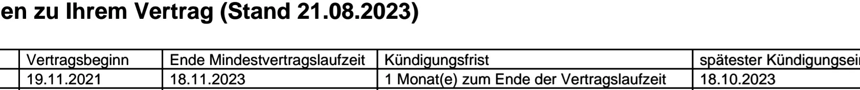 Doch jetzt wird die Mindestlaufzeit für diesen Vertrag für, den 19.12.2023 angezeigt und das ich noch einen Monat Zeit hätte zu kündigen.