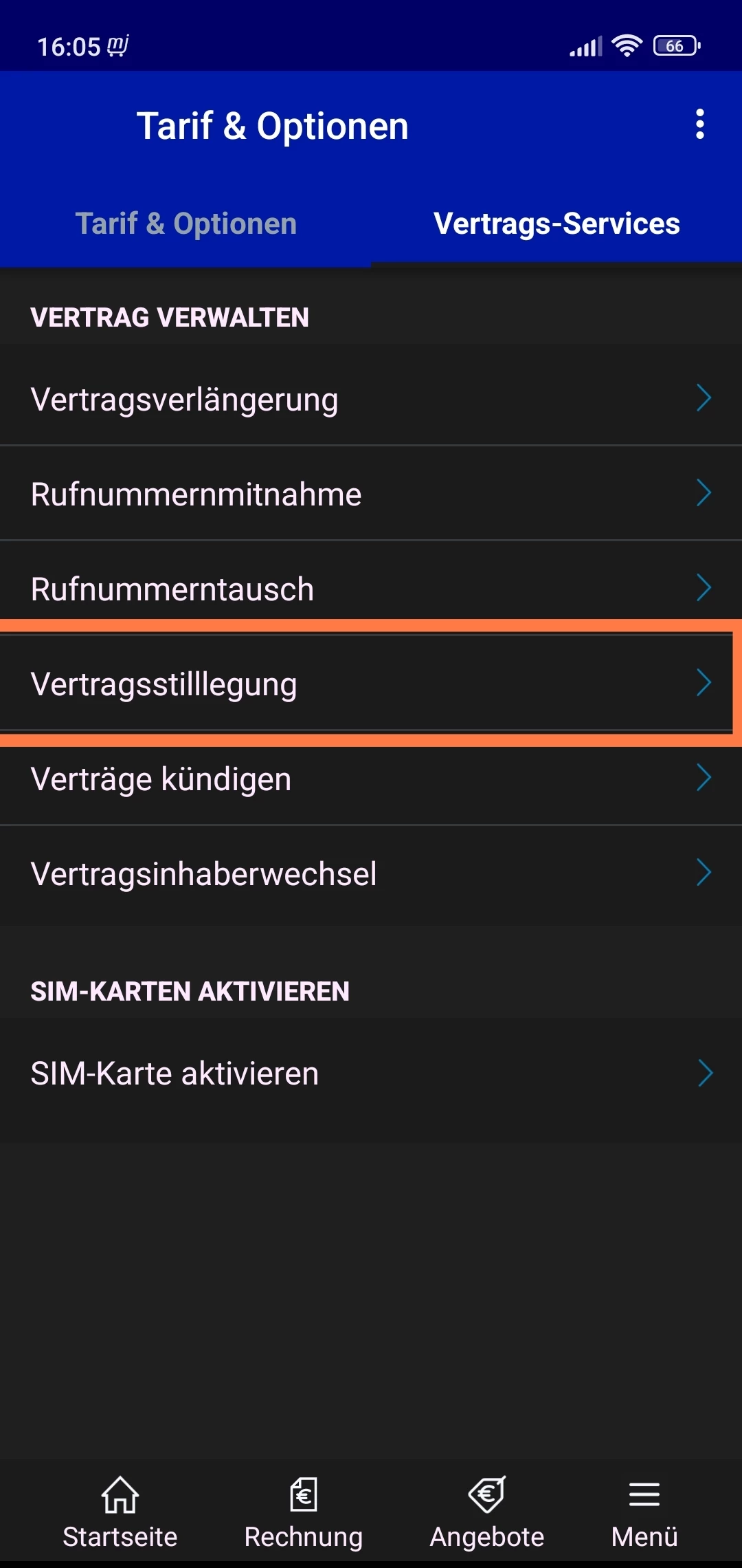 Über die App kann man die Vertragsstilllegung  beantragen und auch die entsprechenden Nachweise hochladen.