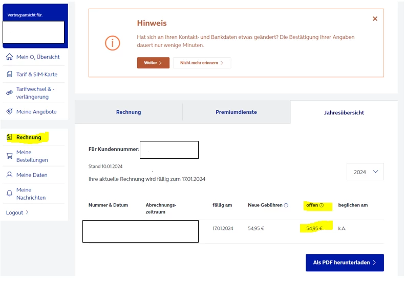 Aber in Mein o2 ist keine Rechnung mehr offen, oder?