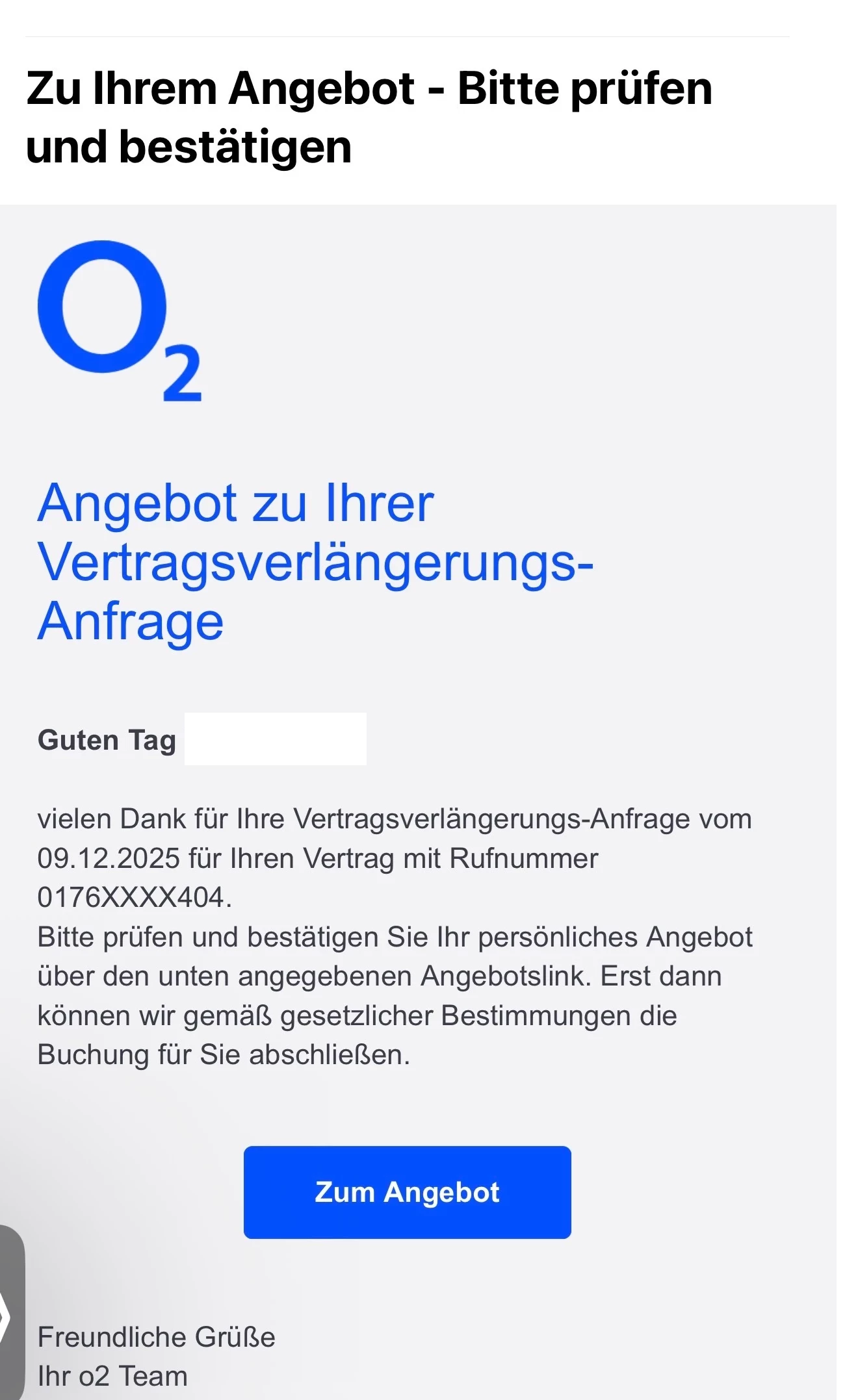 In dieser Zeit können unter Mein o2 keine weiteren Angebote zur Vertragsverlängerung eingesehen werden.