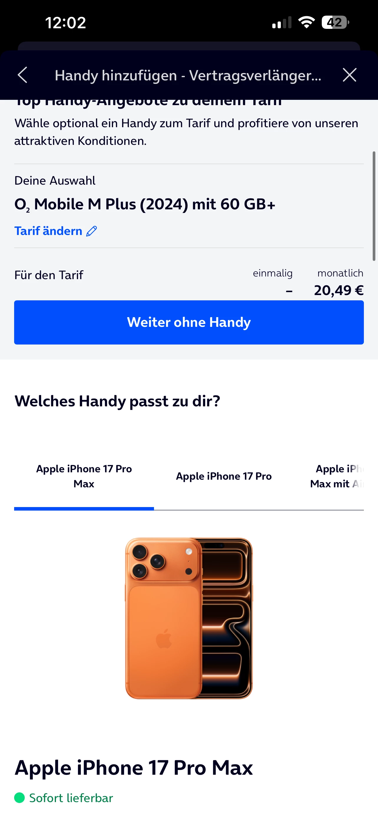 Ja, wenn ich Vertrag verlängern, geh, steht da dass ich mein jetzigen 60 Gigabyte und all net flat für 20,49-monatlich haben kann und das zweite Bild zeigt dann an, dass ich ein Handy auswählen kann aber ich will eine PlayStation 5