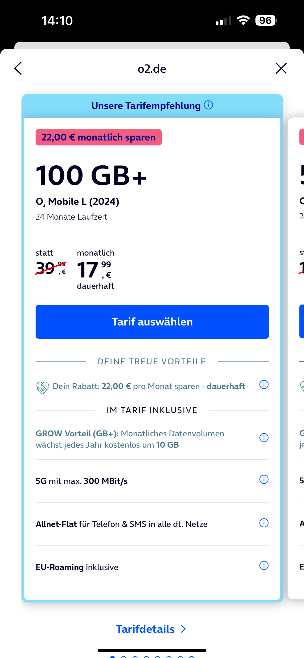 Schaue dir dazu gerne das "Produktinformationsblatt o2 Mobile L" an. Dort findest du alle Produktdetails noch einmal aufgelistet (ohne Rabatte).