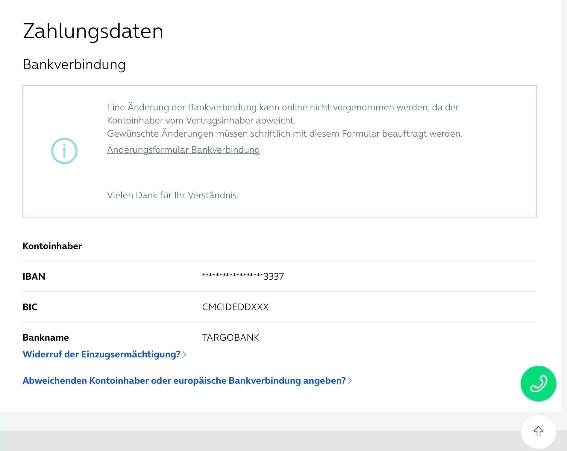 Die Bankverbindung hat sich nicht geändert , ein Sepa Mandat liegt vor und der Kontoinhaber weicht nicht ab. Ich habe alles nachgeschaut und weiß nicht , was ich hier noch tun kann :-(