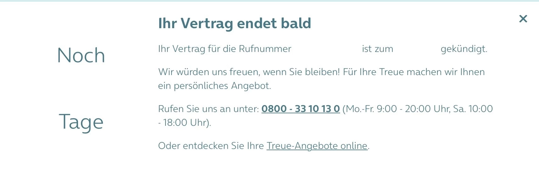 Falls du weiter an einer Vertragsverlängerung interessiert bist, können wir gerne auch von hier aus zusammen mit dir schauen.