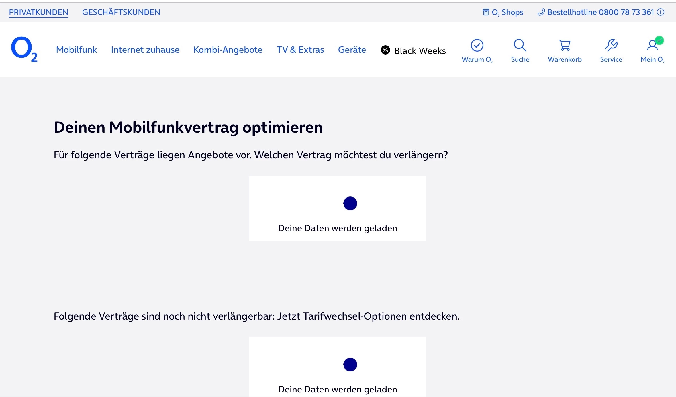 Hallo, ich habe ein scheinbar sehr bekanntes Problem. Ich kann weder über die App noch über den Browser eine Vertragsverlängerung wählen. Die letzten Tage ging das noch, da habe ich mehrere Male geschaut und die Angebote + Handys verglichen.