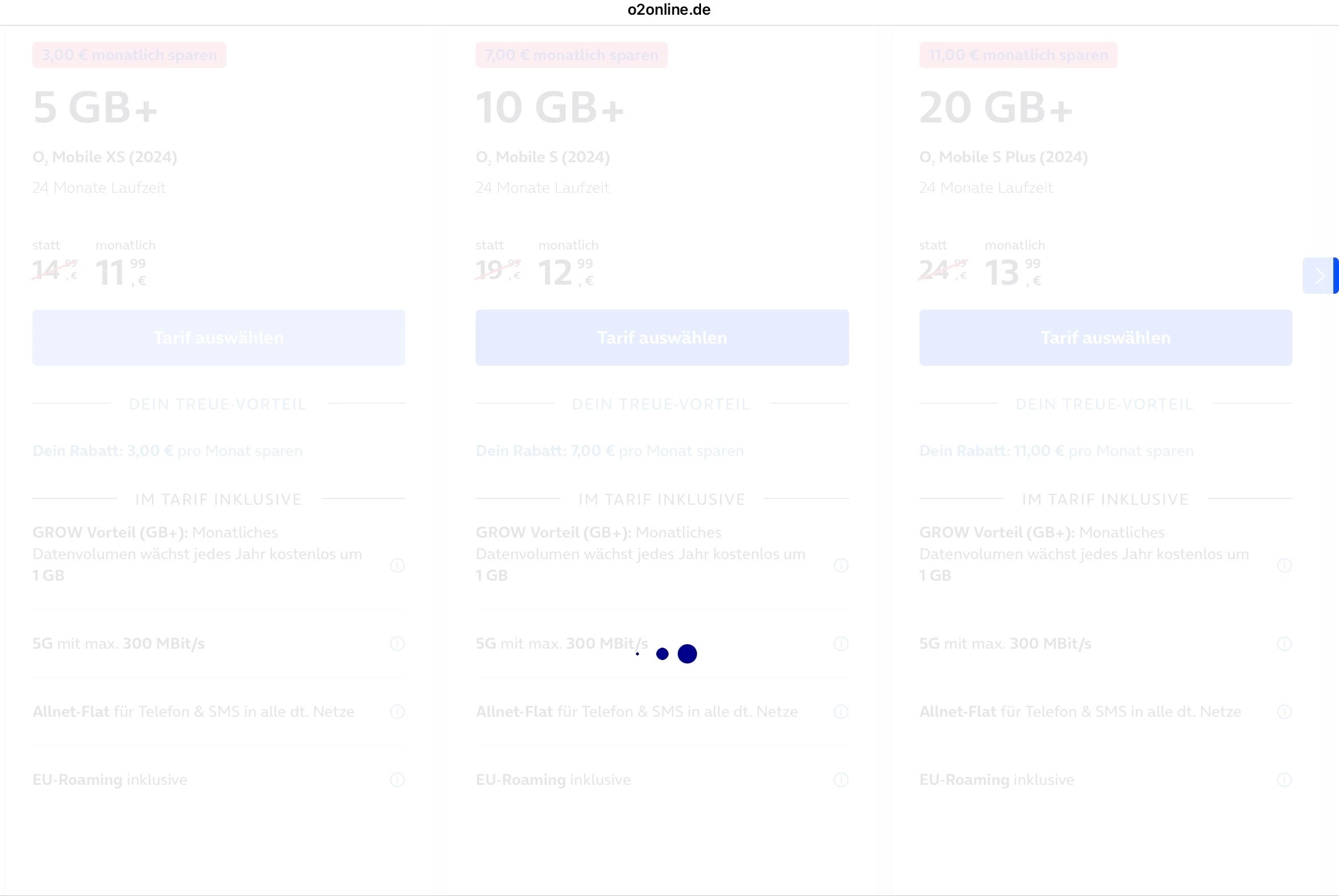 Nun habe ich mich entschieden, aber die Seite lädt nicht mehr. Ich komme bis zur Tarifauswahl durch (sehr langsam), aber sobald ich mir ein Smartphone auswählen möchte lädt die Seite stundenlang aber nichts passiert.
