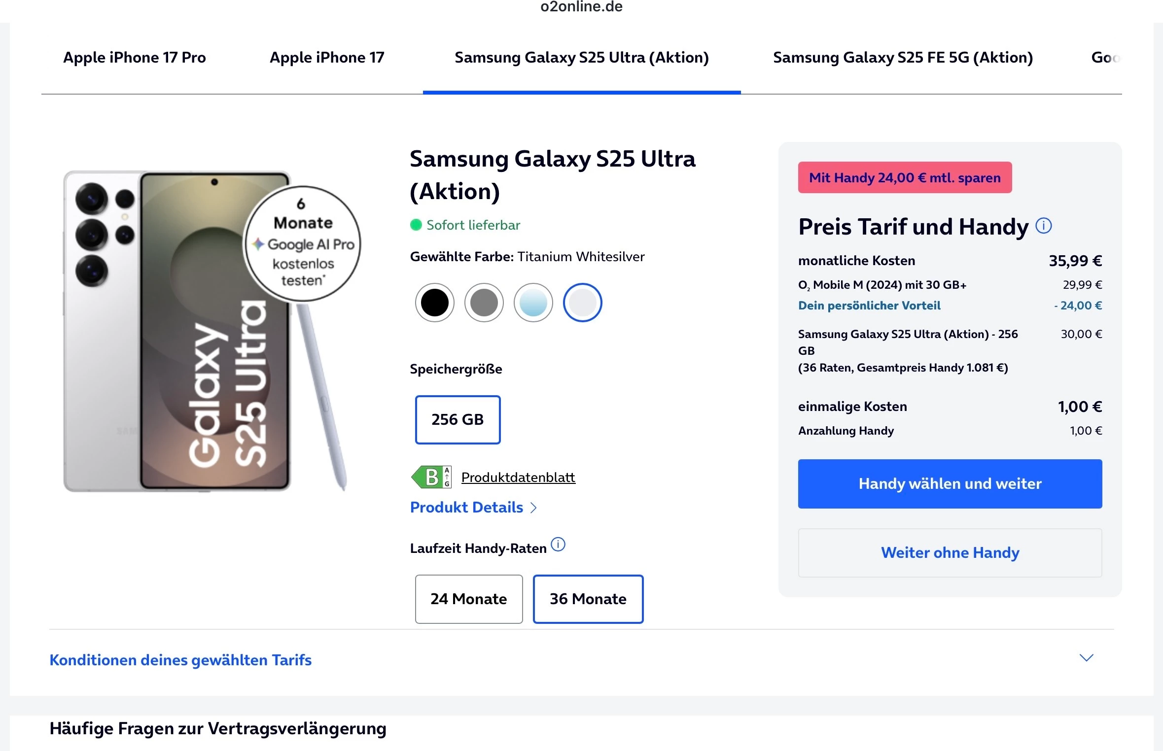 Vertragsverlängerung mit einem Samsung Galaxy s25 ultra