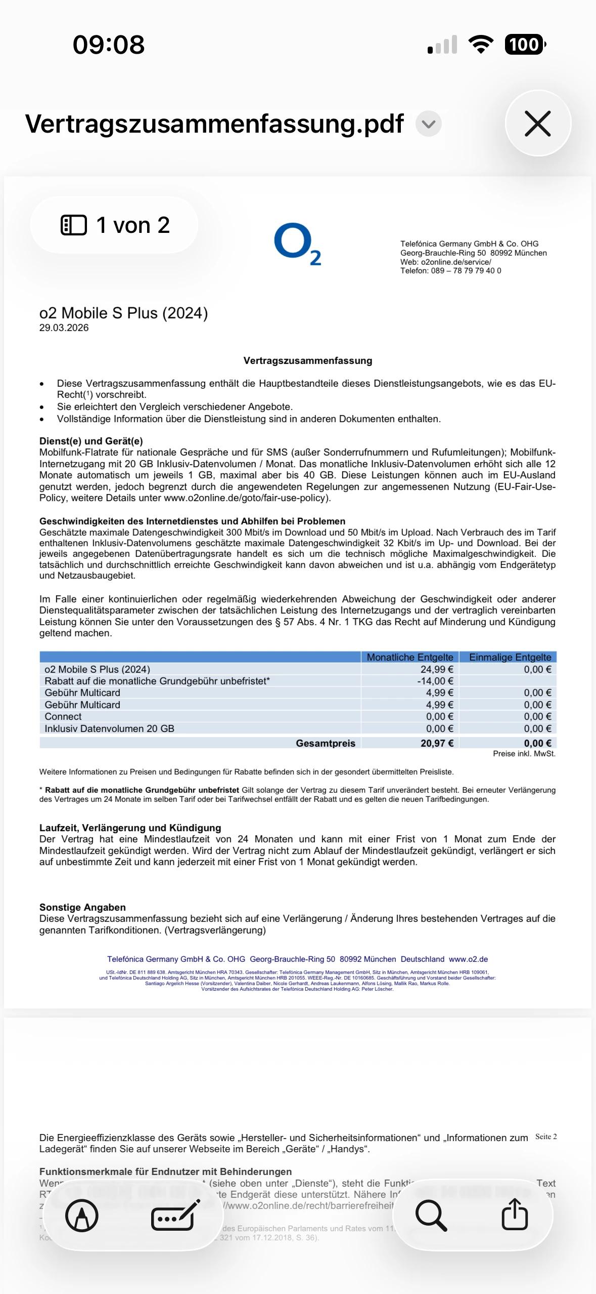 Teile hier bitte einen Screenshot von der Vertragszusammenfassung! Danke.