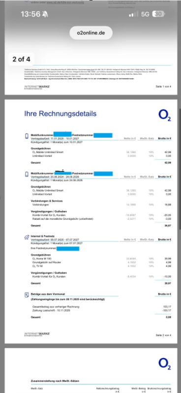 Aktuell habe ich zwei Unlimited-Mobilfunkverträge sowie einen 100-Mbit/s Unlimited Home-Internet-Vertrag mit einer Laufzeit von zwei Jahren. Ich möchte mich nicht weiter mit den vergangenen Problemen befassen, sondern suche nun eine Lösung, um meine monatlichen Kosten zu senken und meine Tarife besser an meinen tatsächlichen Bedarf anzupassen.