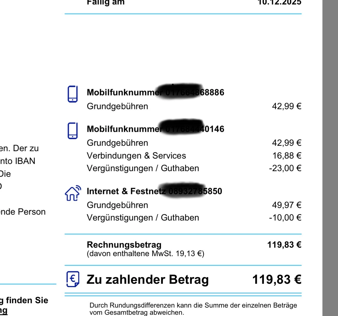 Bei einer meiner Mobilfunknummern werden außerdem Verbindungen & Services in Höhe von ca. 16 € berechnet (siehe beigefügtes Bild). Ich möchte gerne wissen, worum es sich bei diesen Servicekosten handelt und ob diese entfernt bzw. deaktiviert werden können, da ich nicht nachvollziehen kann, warum ich dafür bezahlen muss.