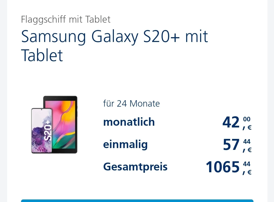 O2 hat aktuell das Angebot “Samsung Galaxy S20+ mit Tablet mit Vertrag O2 Free M mit 20 GB” für 49€ im Monat, gibt es irgendeine Möglichkeit dieses Angebot auch als Vertragsverlängerung für meinen bestehenden Vertrag zu Nutzen? Da muss sich doch für Langjährige Bestandskunden was machen lassen?