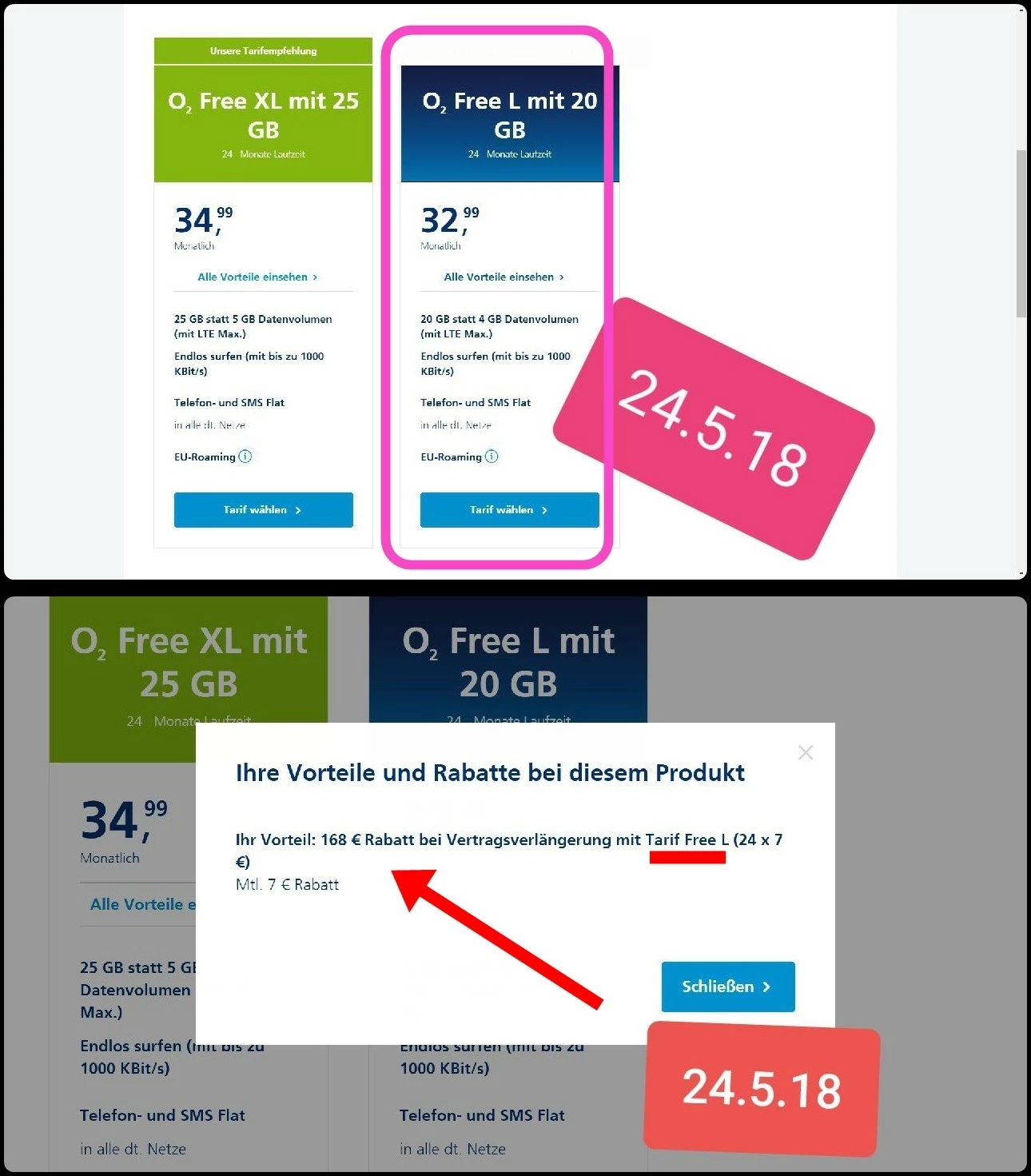 den abgeänderten o2 Free L-Tarif (plötzlich 30GB für 39,99€ bzw. den o2 Free L Boost mit 60 GB für 44,99€).