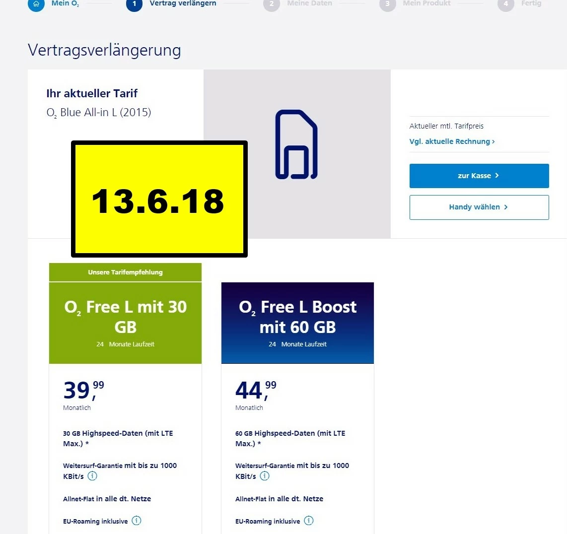 Ich habe mir in den letzten 3 Wochen, beginnend kurz vor Ende der Laufzeit, online meine möglichen Angebote in punkto Vertragsverlängerung angeguckt.