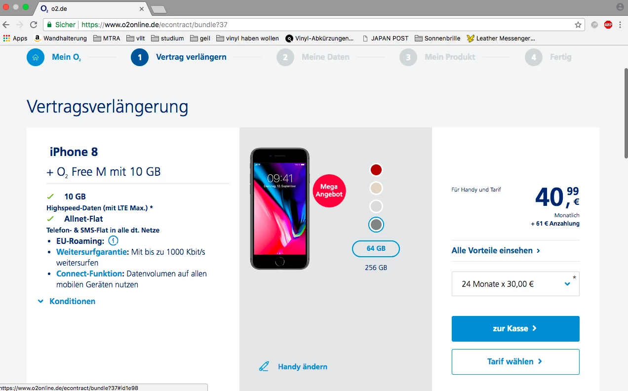 Ich zahle also für den Vertrag "o2 Free M" und das "iPhone 8 64GB" insgesamt 40,99€/Monat bei einmaliger 61€ Anzahlung, richtig?