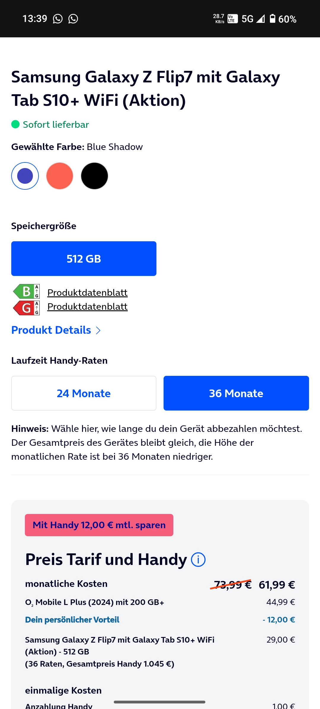 Danke für deine schnelle Antwort. Ich meinte die Aktion Galaxy Flip7 mit Galaxy Tab S10+ wifi. Ich denke die ist seit heute oder gestern online.