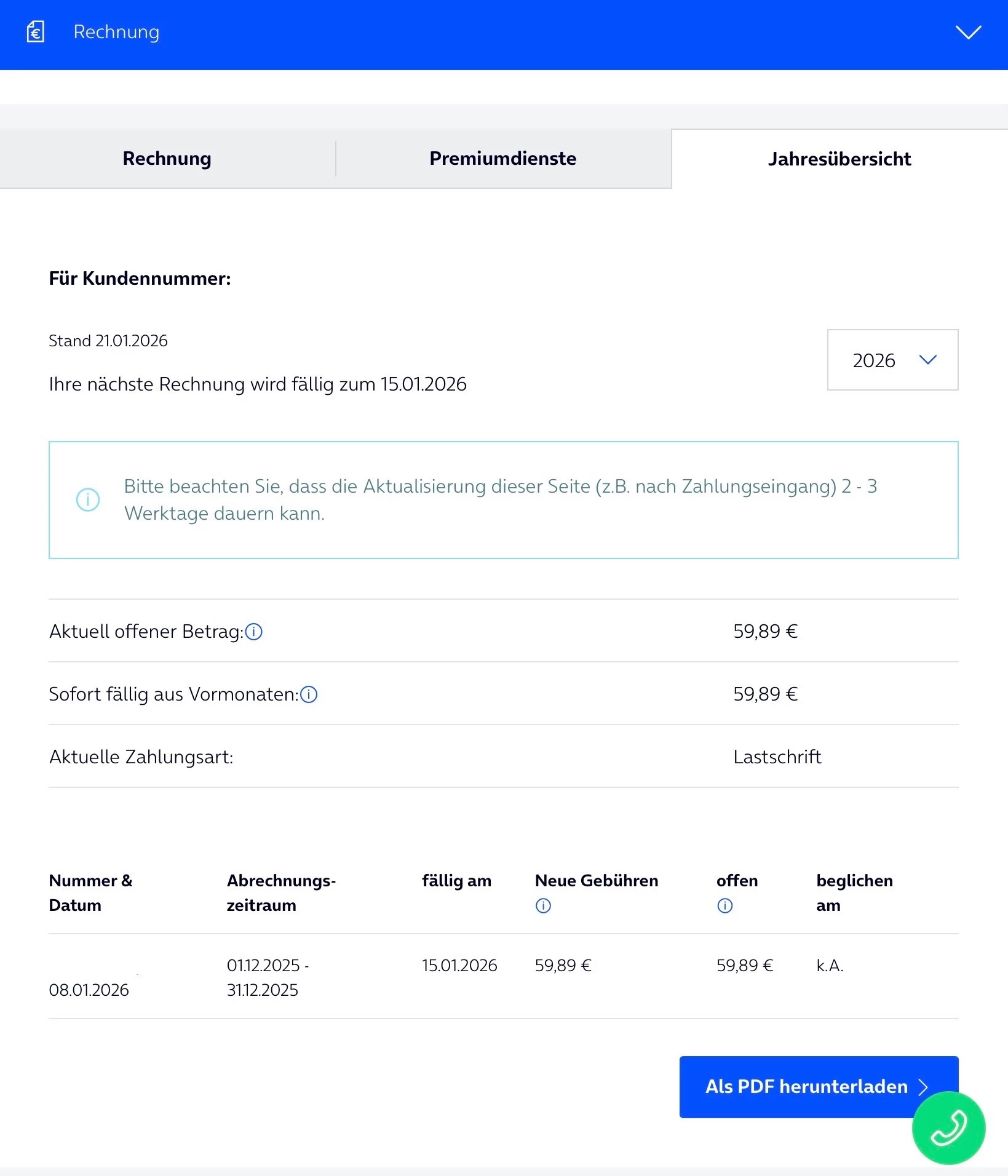 Laut Kundenportal noch nicht beglichen.