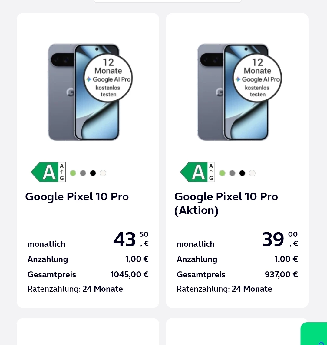 Das Google Pixel 10 pro kostet mit oder ohne Tarif≈ 1000€ ...da wird's auch mit Kündigung nix mit 19,,9€ mtl