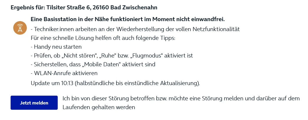 tatsächlich liegt in der Gegend aktuell eine Störung der Basisstation vor.