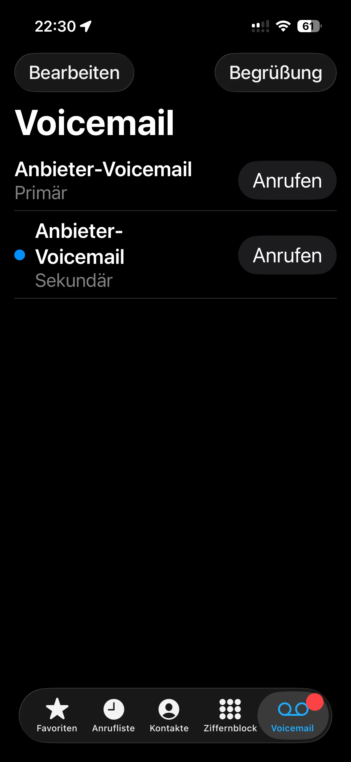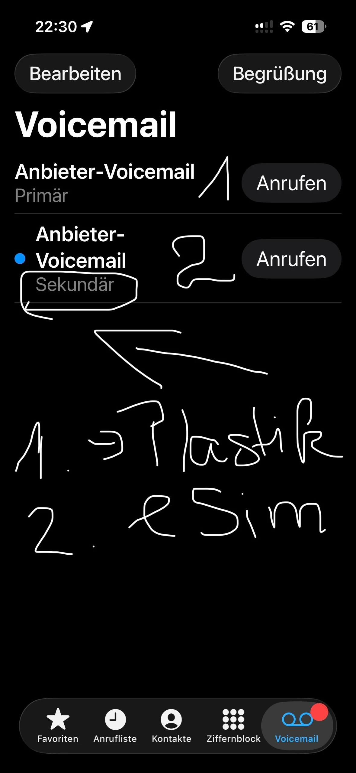 Am Ende bleibt das eigentliche Problem weiterhin ungelöst: Ich kann meine Voicemail (roter Punkt) immer noch nicht deaktivieren. Die Meldung erscheint weiterhin 6–7 Mal pro Minute, sodass ich mein Handy nur noch auf lautlos stellen kann.