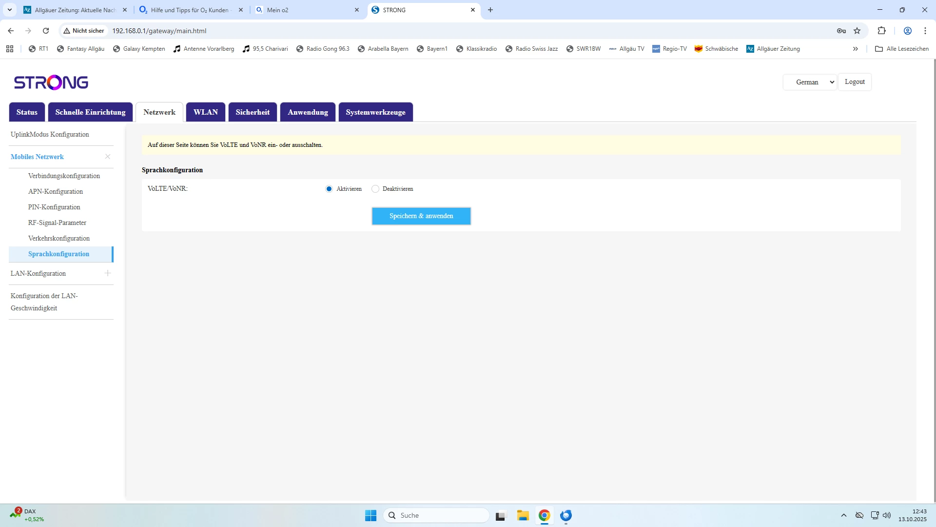 Ich habe mir kürzlich bei O2 die SIM-Karte tauschen lassen und seitdem habe ich nicht nur ein schnelleres und zudem auch noch stabileres Internet sondern auch ein funktionierendes VoLTE über den Router.