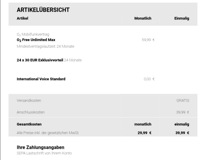 Ich bin ziemlich enttäuscht vom Verhalten Seitens o2. Ein Telefonat und eine Email haben absolut nichts gebracht. Anscheinend will nichtmal jemand verstehen was Sache ist. Mir wurde im September 2021 ein zweiter Vertrag von einem o2 Mitarbeiter angedreht. Der größte, unlimited XL Vertrag. Es wurde mir beim damaligen Telefonat ein dauerhafter Rabatt von 50% versprochen wenn ich ihn jetzt sofort abschließe. Er meinte ich müsste den Vertrag jetzt sofort abschließen weil ich sonst diesen Rabatt nicht bekommen kann. Habe ich dann auch gemacht und auch auf seinen Rat hin sofort meinen bestehenden Vertrag gekündigt, der bis zum 30.06.2022 lief.