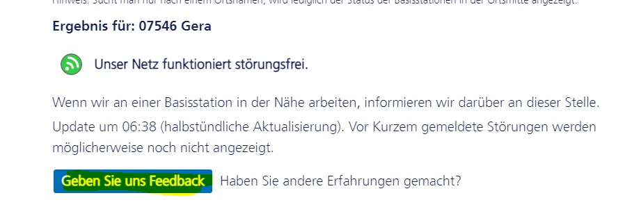 Ich bitte dich daher zu Dokumentationszwecken, weiterhin die Störungen über unser Feedback-Button auf unserem Live-Check zu melden.