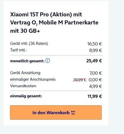 Das Xiaomi 15t Pro mit 30gb allnet grow