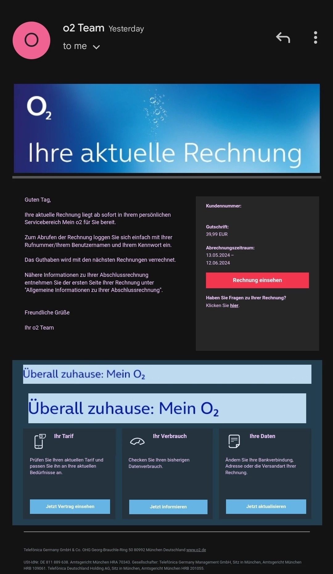 Vielleicht hat der betreffende Kunde, deine E-Mailadresse in seinen Kontktdaten angegeben? Deshalb entferne bitte die Kundennummer, ein o2 Mitarbeiter wird sich das zeitnah ansehen.