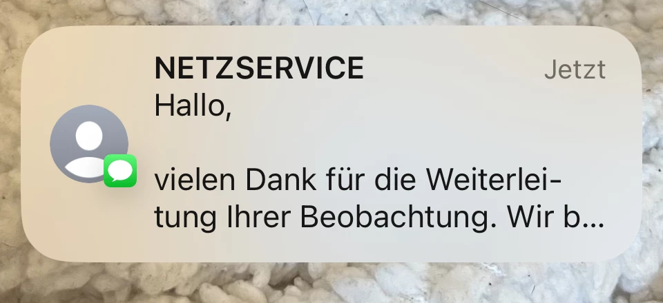 Aber ihr habt recht, weiter geleitet noch nichts, da ich noch nicht richtig wußte von welcher Adresse wir eigentlich sprechen (“Roßdorf und auch nicht in Gundernhausen.”, “Bahnhofstraße”, “Roßdorf, Gunderhausen oder Dieburg “, “10 km Richtung Funkmast”...)