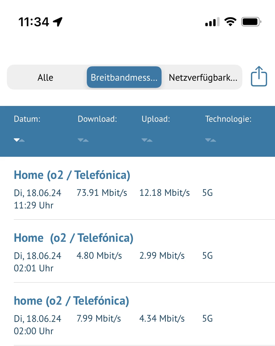 jetzt ist es umgekehrt, 11 Uhr, wenn alle wach sind guten Speed, nachts, kaum Speed.