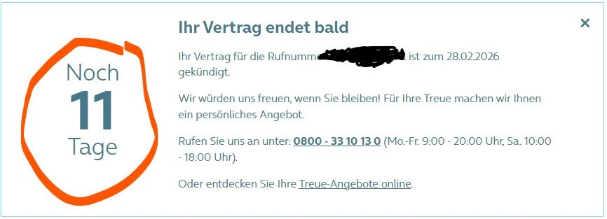 Statt des Mobilfunkvetrags wurde heute morgen der Festnetzanschluss deaktiviert. Der läuft doch eigentlich noch bis September 2026.