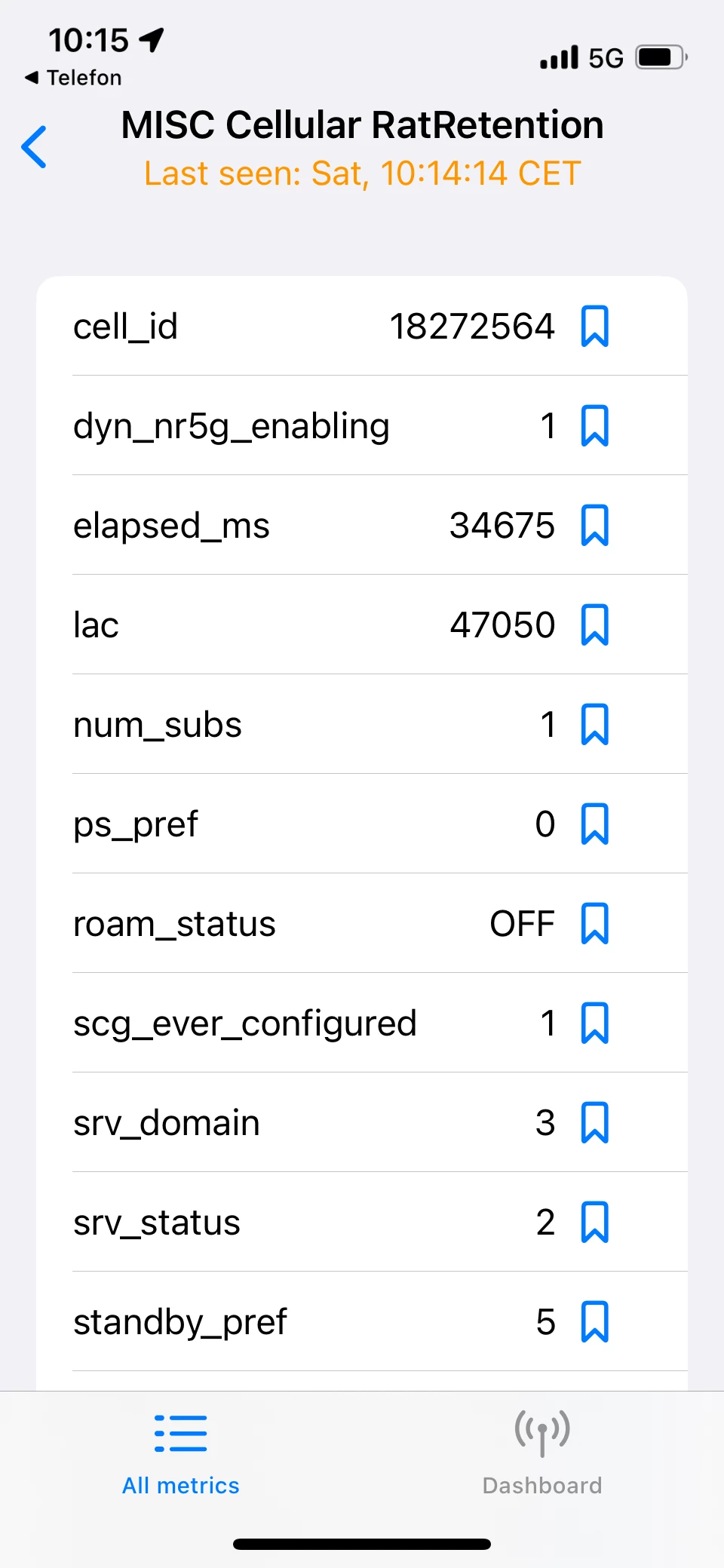 Radio Access = die Technologie die gerade genutzt wird (da 5G NSA zum Einsatz kommt, ist es eine LTE Zelle, und damit steht hier auch LTE)
