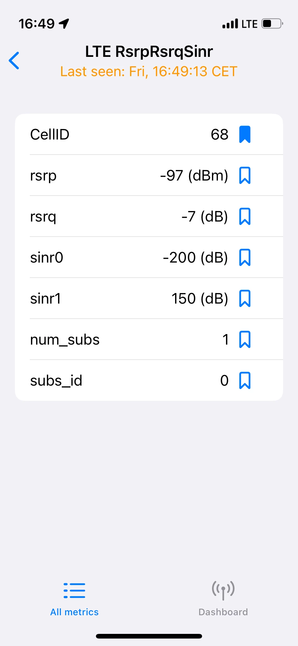 Auf dem Bild erkennt man einen RSRP Wert von - 97 (dBm) bedeutet - 95 dBm bis - 105 dBm ist in einer Schulnote eine 4 also ausreichend (noch akzeptable Bedingungen mit Einschränkungen beim Speed; ggf. auch Abbrüche