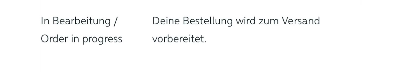 Guten Abend meine Bestellung mit der Auftrags Nummer xxx ist seit heute Vormittag in Bearbeitung was bedeutet der Status genau, lese überall etwas anderes ?